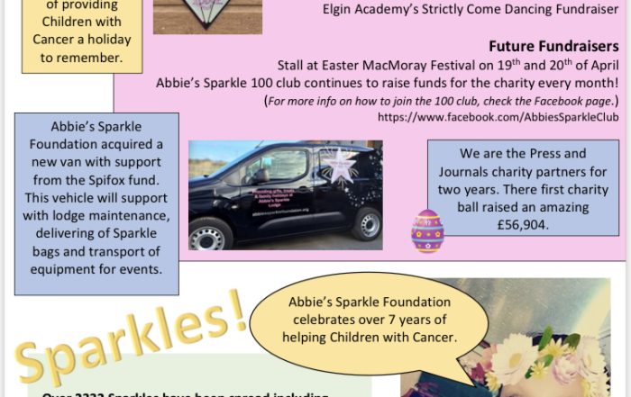 We are a Scottish Children’s Charity providing support for children with Cancer across Scotland. We know how important it is to live every moment of every day to the full and Abbie’s Sparkle Foundation is here to spread Abbie’s Sparkle to help brighten a child’s day #sparkle.